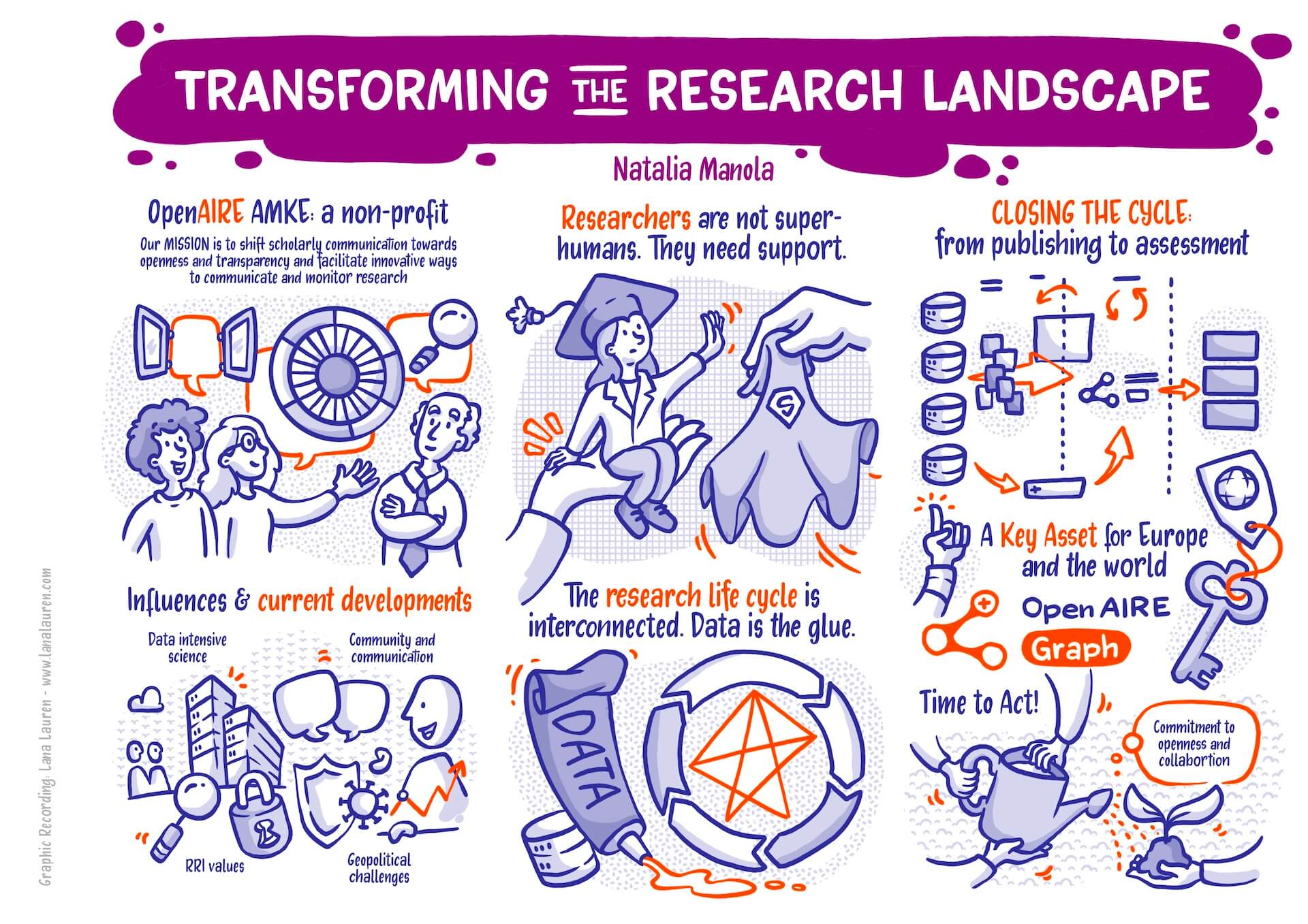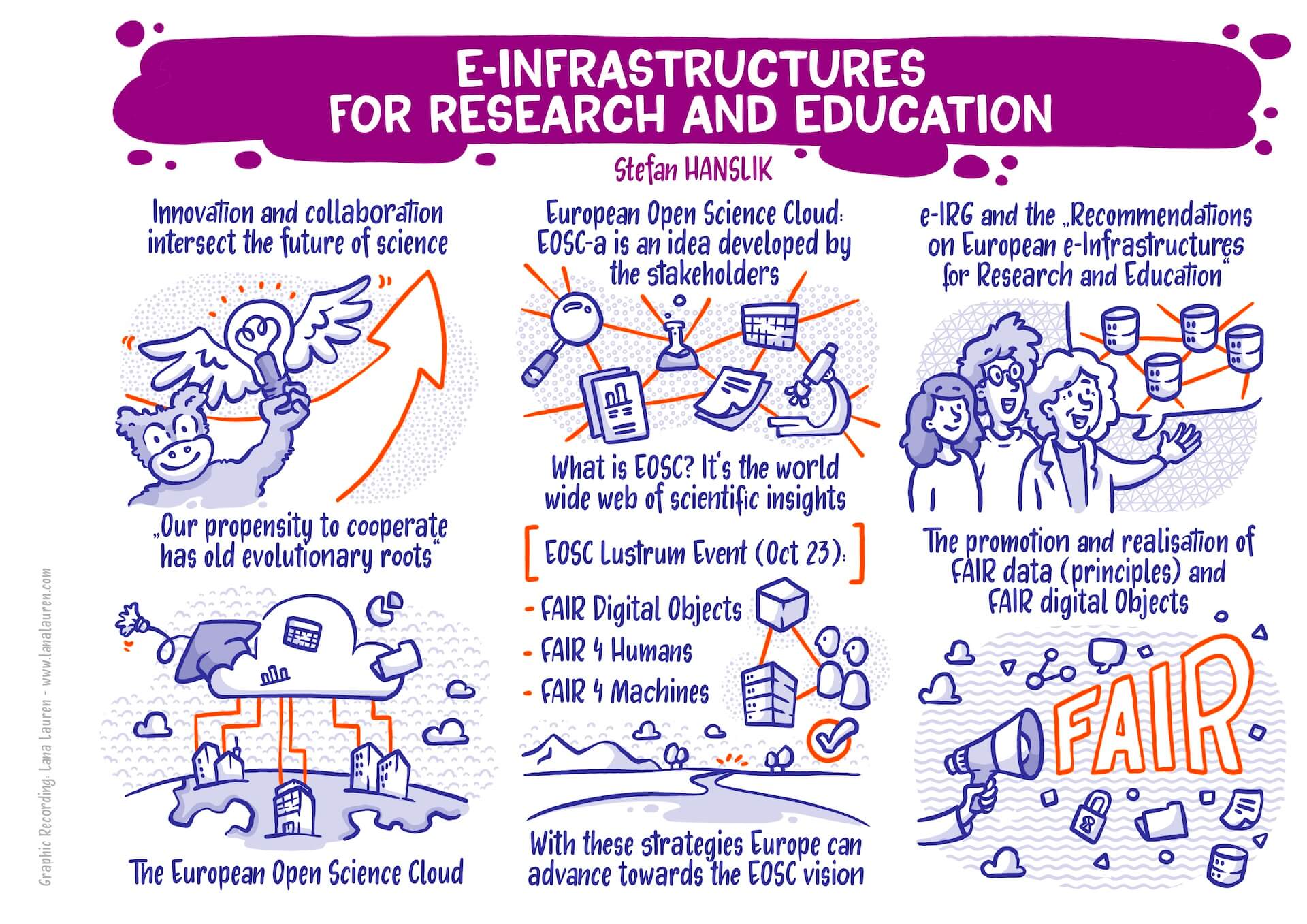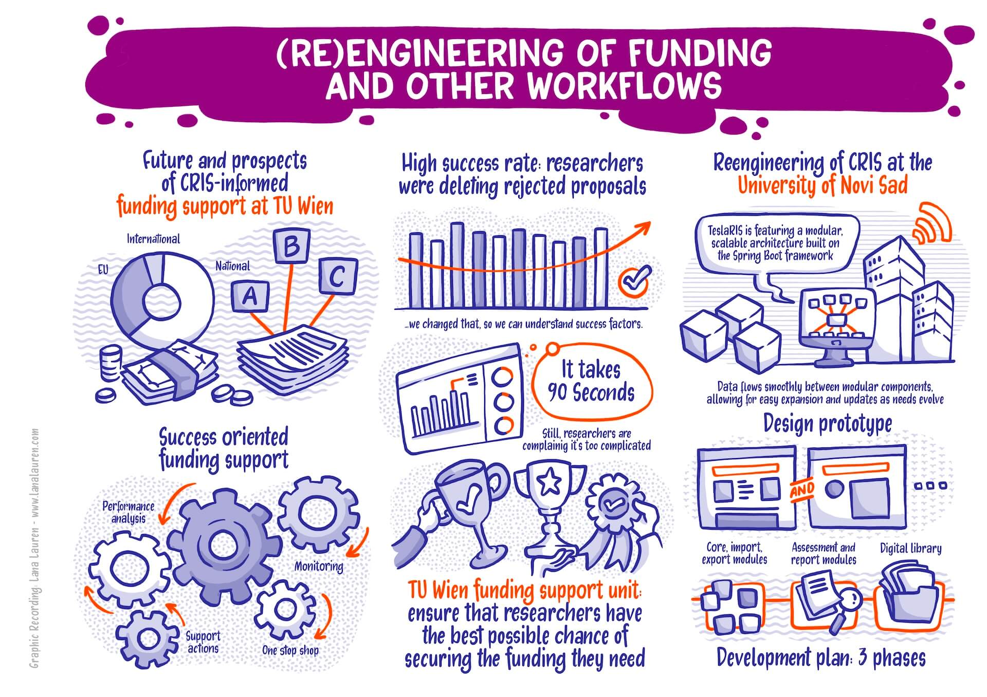 My Graphic Recording visually captured the key points of the presentations and discussions. The vivid illustrations helped participants grasp the really very complex and abstract topics as well as the exciting discussions with panelists from many different countries at a glance. It was an exciting and challenging task that more than paid off: it was fascinating to see how the latest developments and ideas in the world of research information systems were presented and discussed.