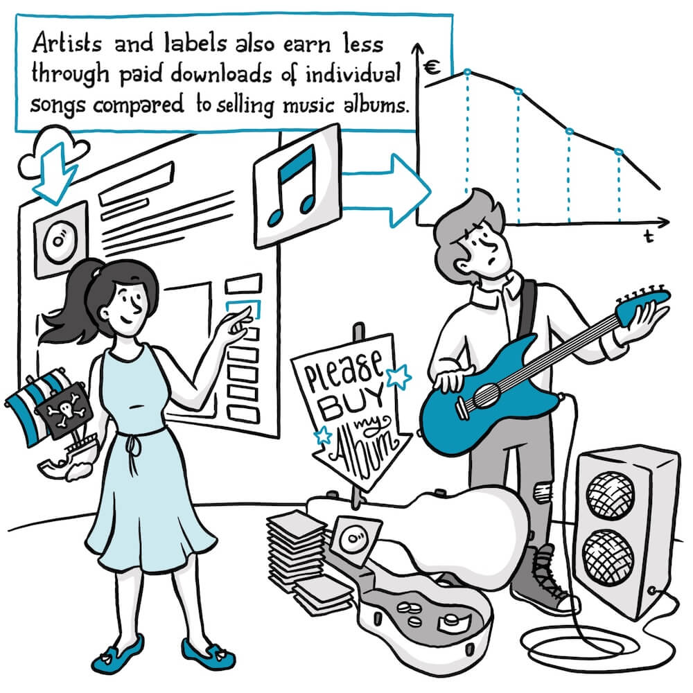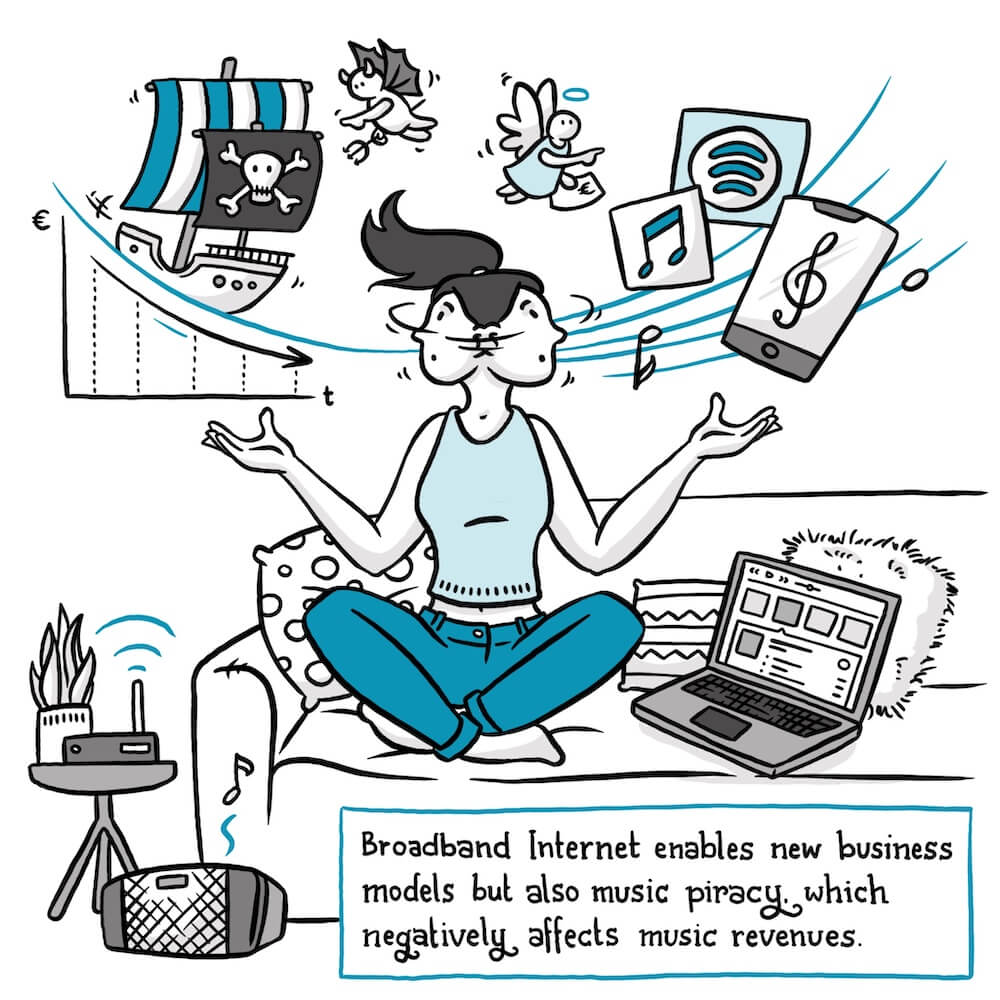 Here you can find three examples of the 3-panel comics published in 2020, in which we examined how streaming platforms have changed the music market, whether the customization of products by end users adds value, and what makes a good website.