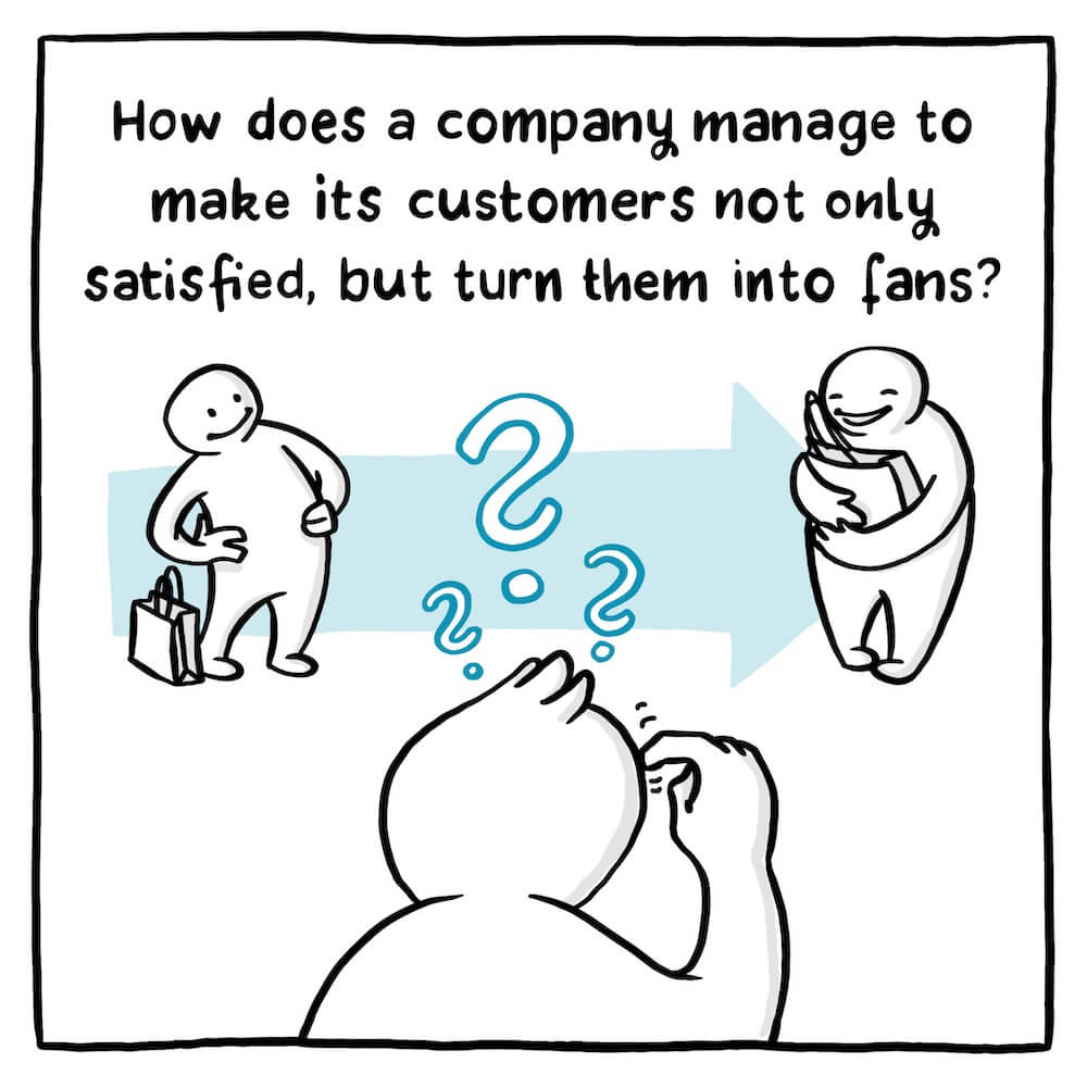 Here you will find three examples of the 3-panel comics published in 2022, in which we explore the question of what possibilities exist to analyze “Customer Journeys,” why unique products are a double-edged sword, and how to turn customers into fans.