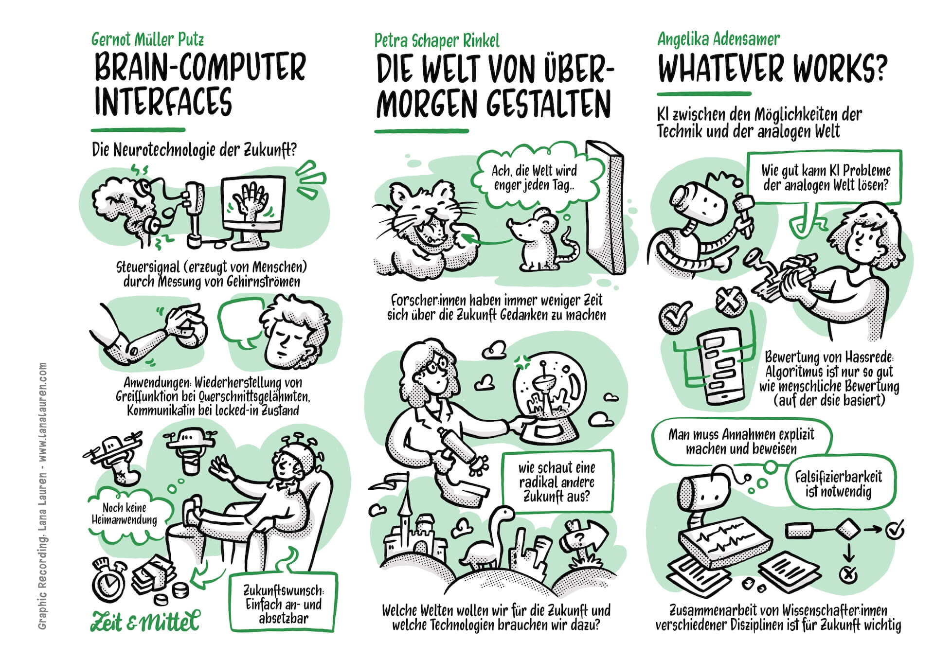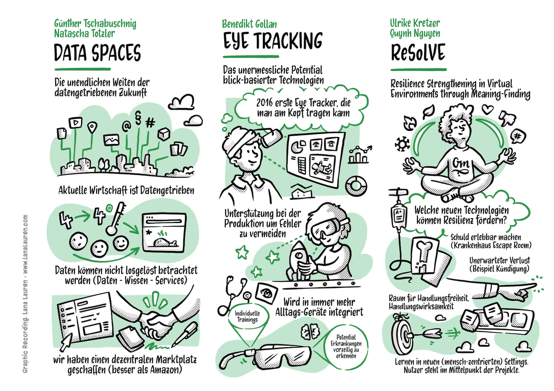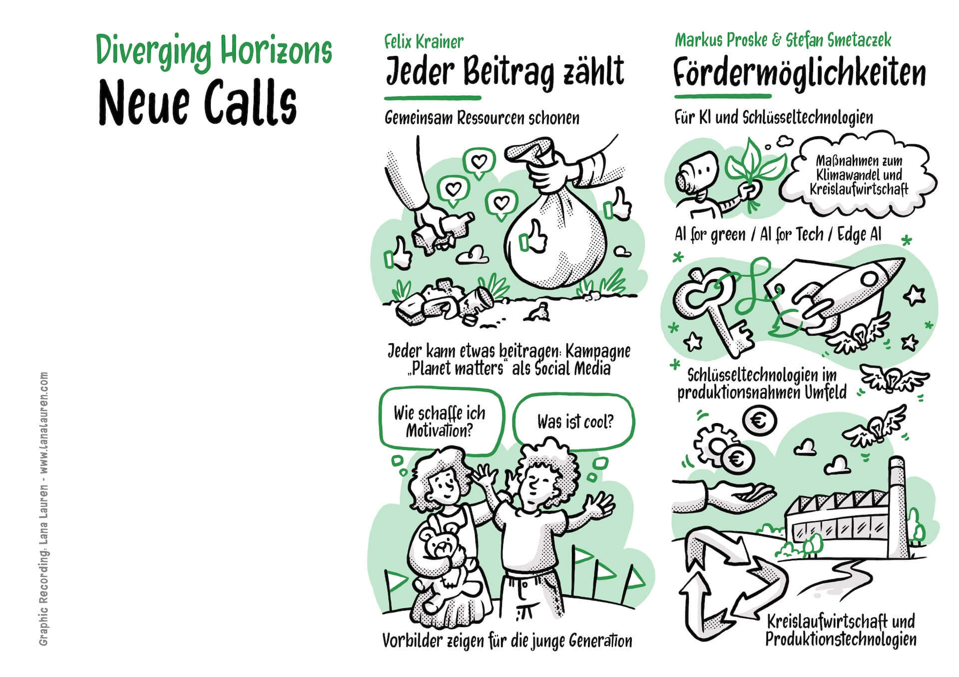It was a great pleasure for me to once again accompany the IMAGINE, the flagship event of the Austrian Federal Ministry for Digital and Economic Affairs (BMK) and the Austrian Research Promotion Agency (FFG), as a graphic recorder this year. This event serves as a platform for the most innovative projects and researchers in the field of digital and key technologies in Austria. My graphic recording captured the highlights of the event – from the opening to the exciting keynotes and the new calls on topics such as robotics, artificial intelligence, and smart textiles.